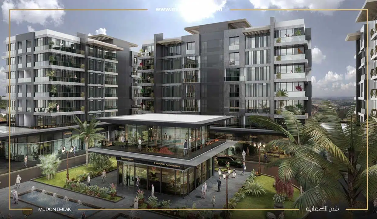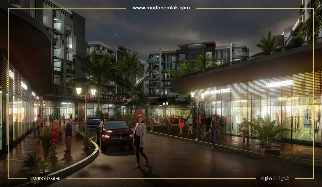 - يتألف المشروع من 4 أبنية و120 وحدة سكنية و50 متجر.